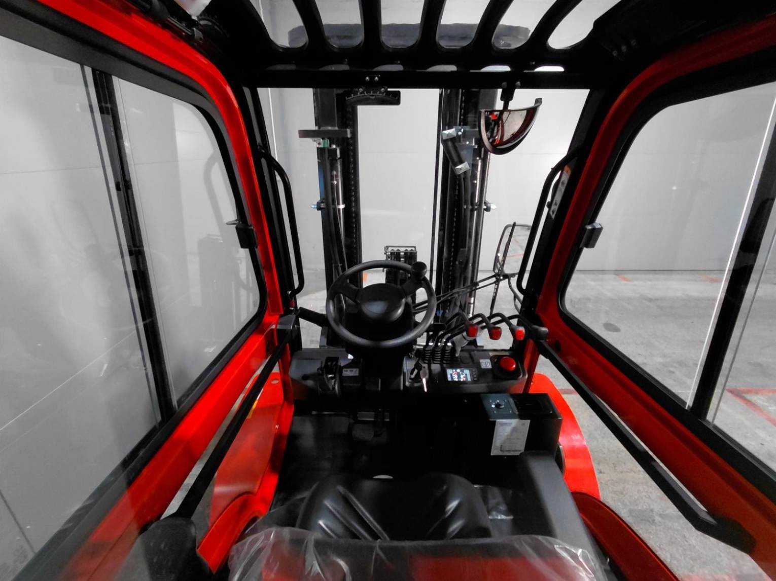 Cabina 4ª válvula que llega a la plataforma Calefacción y desempañado LED road lighting Panoramic rearview mirror Rear blue spot Rear work lights Reported sideshift Reverse signal Strobe beacon USB plug Vertical exhaust |