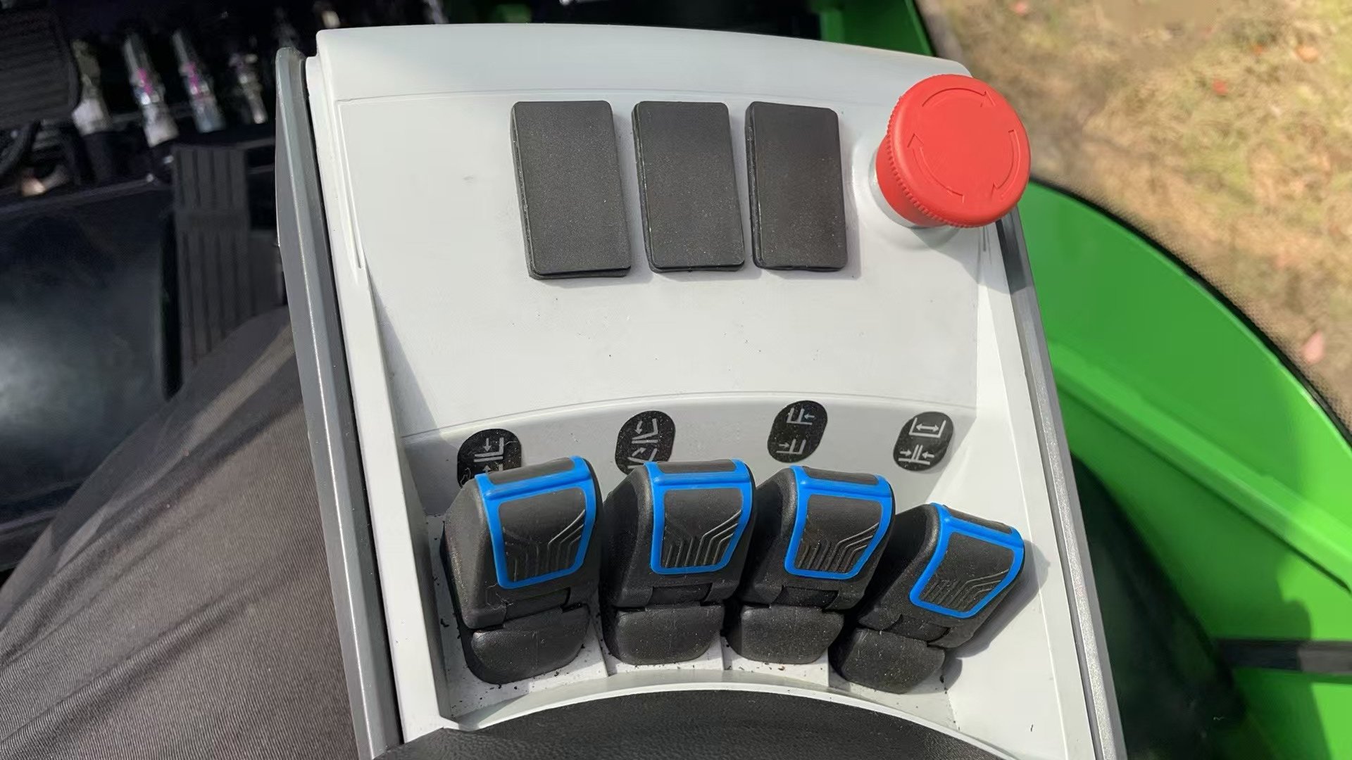 Desplazador lateral Posicionador de horquillas 3 way hidráulico 4ª válvula que llega a la plataforma Mini palanca Heated cabin Iluminación ruta Rear work lights Rear blue spot Strobe beacon Panoramic rearview mirror USB plug |