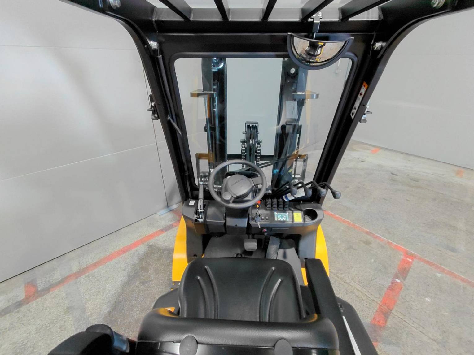 Reported sideshift Posicionador de horquillas 4ª válvula que llega a la plataforma Parabrisas delantero Covered roof Iluminación ruta Rear work lights Rear blue spot Strobe beacon Panoramic rearview mirror USB plug |
