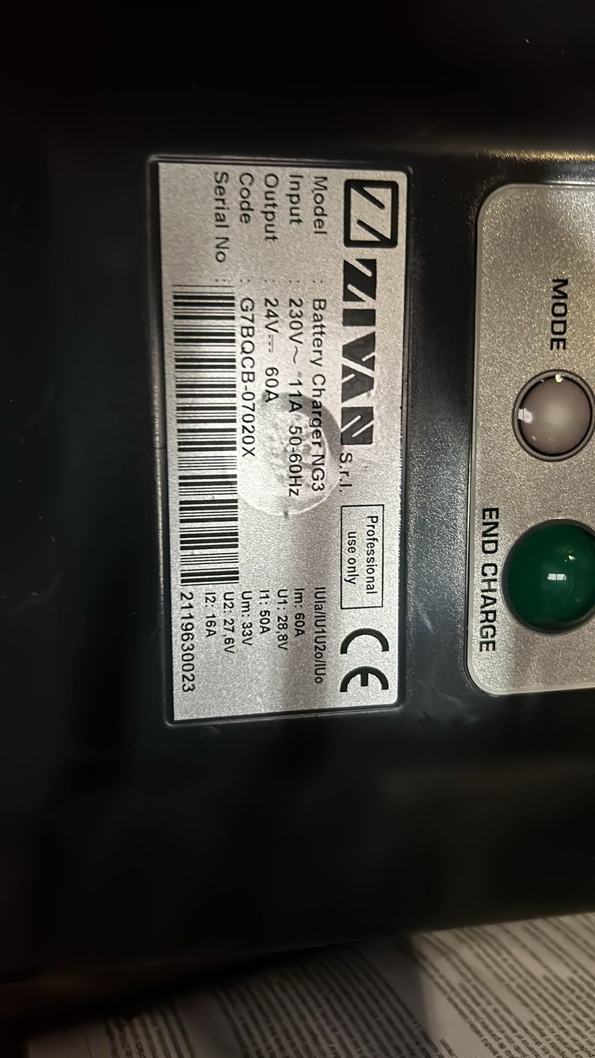 | Chargeur | ZIVAN Modèle : Battery Charger NG3 N° de série : 2119630023 |