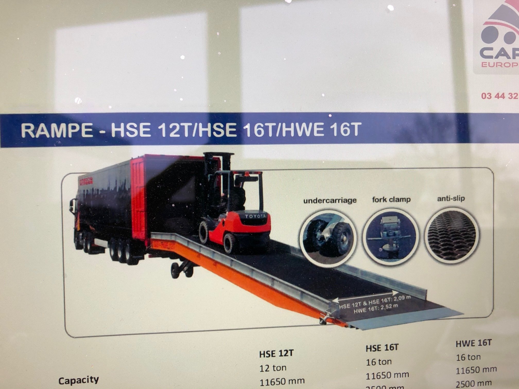 rampe de chargement avec levage électrique sur 2 batteries gel et manuel. Capacité : 16 tonnes