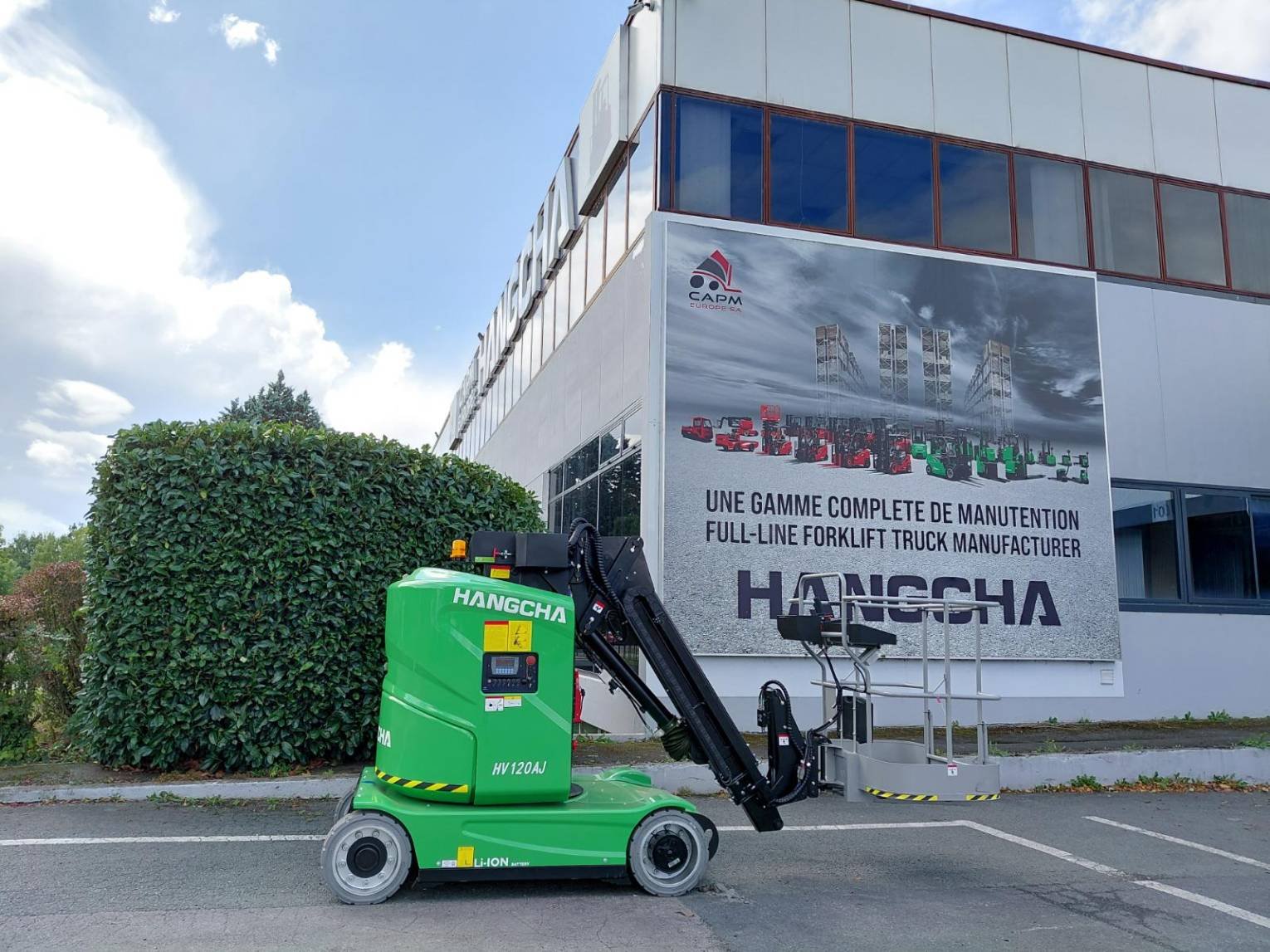 Detalles | 12M vertical mast lift(with telescopic), load capacity 200kg HV120AJ Load sensing system STD (CE) Beeper(Full motion alarm ) Flashing beacon Power leackage protection 220V plug Built-in lithium charger 48V 40A (Single phase) EVE Lithium Battery 48V/160Ah Euro plug |